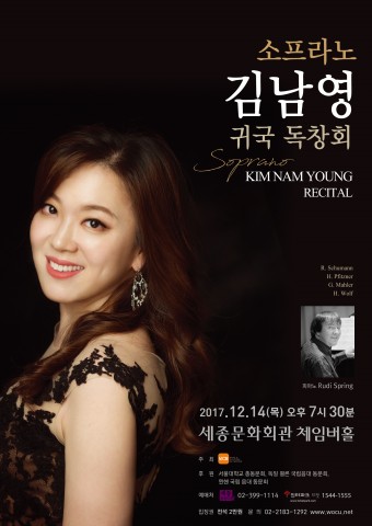 ▲ 14일 소프라노 김남영의 귀국독창회가 서울 세종문화회관 체임버홀에서 열린다겨울 밤, 아름다운 목소리와 함께 음악 여행을 할 수 있는 공연이 열린다. 14일 ‘소프라노 김남영의 귀국독창회’가 서울 세종문화회관 체임버홀에서 열린다.